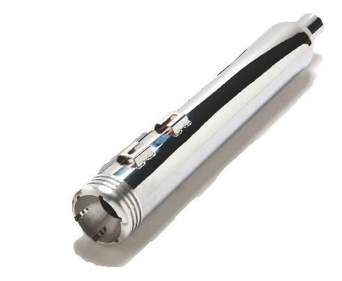 真鍮素材を研磨後クロームメッキ仕上げインナーサイレンサー標準穴径(12mm)組込済/取付ステー付属。
