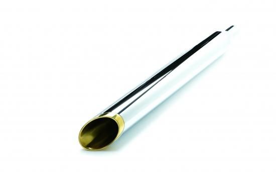 マフラー本体の外殻部に他に類を見ない管楽器と同じ真鍮素材を採用。